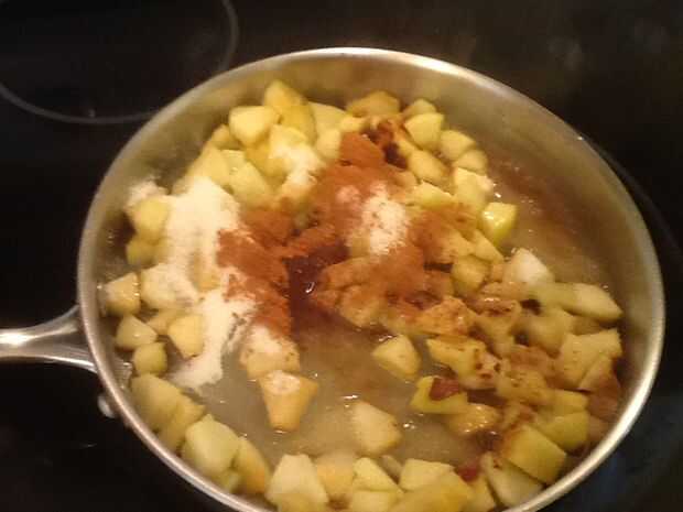 esto es una mezcla de un pastel de manzana y nuez que hice. Sólo una tarta pequeña de 4 personas (4 rebanadas pequeñas). Tarda aproximadamente una hora para preparar y hornear 30 minutos. ¡ Disfrute!Se reúnen los ingredientes:De tarta:3/4 taza de har