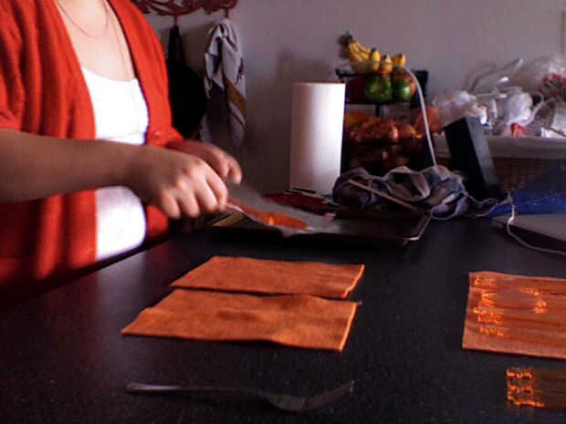 No tocar sin el fieltro. Si usted es trabajo más grande, usted probablemente querrá guantes de cuero. El acrílico en esta etapa se llevará en cualquier forma, incluyendo sus huellas dactilares.