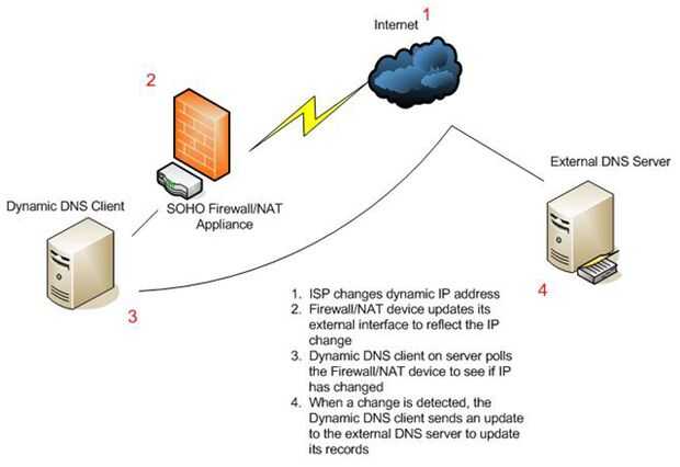OK, ahora un DNS dinámico es como un tablero de mensajes donde pones tu IP y donde está asociado con un nombre como 82.76.231.55 se asocia con www.google.com . Ahora puedes utilizar un servicio de dns dinámico gratis aquí tienes una lista de proveedores de servicios ( http://dnslookup.me/dynamic-dns/ ).