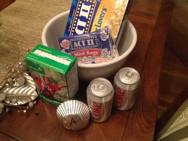 Refrescos, pizza, palomitas de maíz, pastelitos, chips, galletas de girl Scouts y M & M es todos excelentes opciones! Siempre puede tener cada huésped trae un snack diferente!