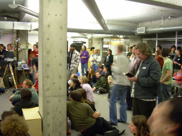 Mismo trato va de preguntas muy específicas y técnicas. El público realmente interesado en un proyecto tendrá tiempo para hablar con el presentador uno-a-uno en la tercera mitad de la noche.