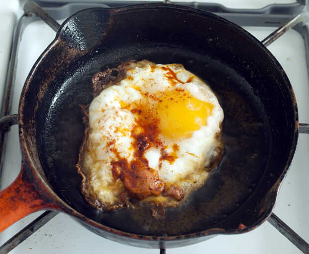 • Romper el huevo en la sartén muy caliente y cocinar hasta que esté cocida a su gusto. Tardó unos 30 segundos para mi huevo para cocinar.