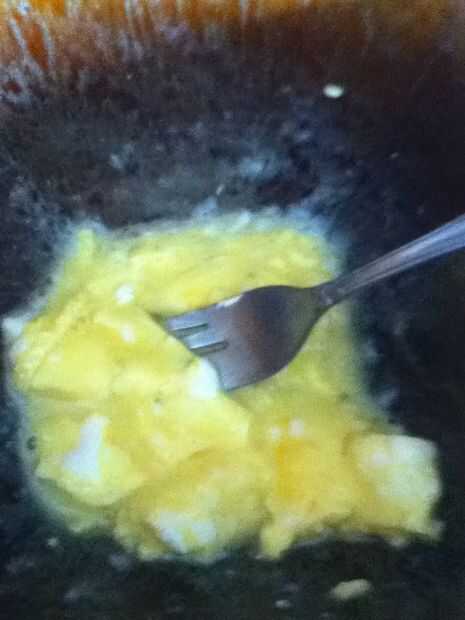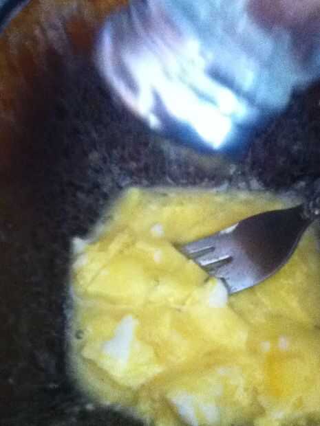 este es un desayuno comer todas las mañanas que es muy fácil de hacer.Paso 1: equipo de Lo que usted necesita:* Un pan* 2 huevos* Una espátula* Queso Cottage* Canela* Avena (opcional)Paso 2: Huevos revueltos Romper los huevos en la sartén y ponga la
