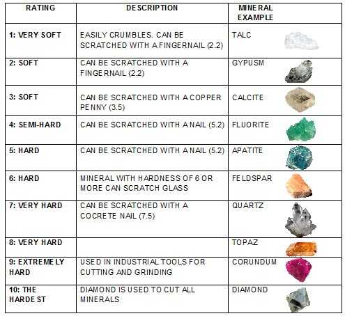 Si un mineral puede rayar con una moneda de cobre, pero no puede rayar el cristal, el mineral tiene una dureza entre 3-6.