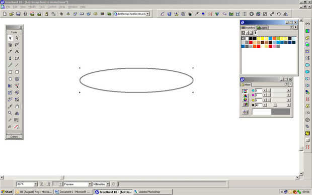 1: dibujar una elipse (recuerda que lo mejor de un equipo es que puedes reutilizar elementos una y otra vez, así que asegúrate de que empiezas a dibujar la parte de lo que estás describiendo de una manera que usted puede seguir para agregar a ella para cada paso subsecuente, en lugar de tener que dibujar desde un nuevo ángulo para cada paso.
