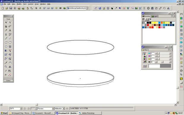 El escarabajo de tapa de botella que es objeto de este instructivo está hecho de tapas de botellas que son los tambores simples. Hace el dibujo en un equipo muerto fácil.