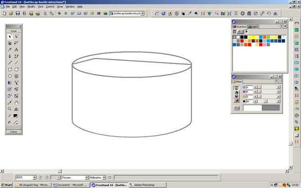 3: traer la elipse superior al frente y asegúrese de que está llena de blanco así que oscurece la línea superior de la forma de la parte inferior