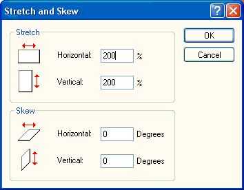 Pintura no puede estirar selecciones más del 500% (5 x) para aumentar la selección a su tamaño original es necesario estirar en un 500%, luego repita el tramo al 200%.
