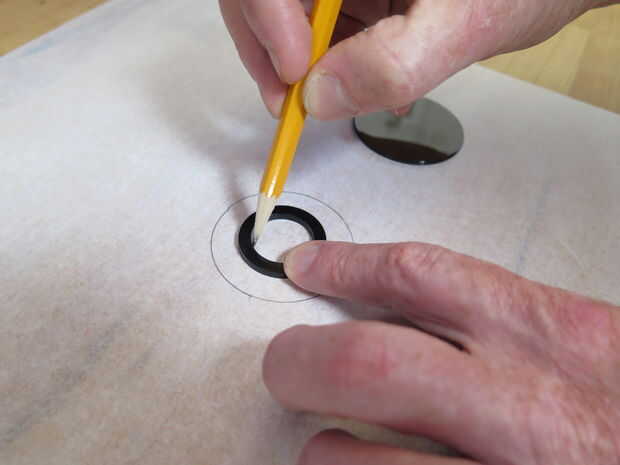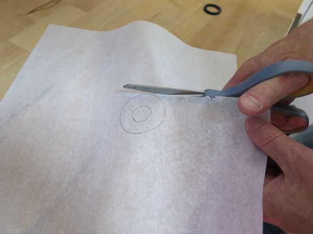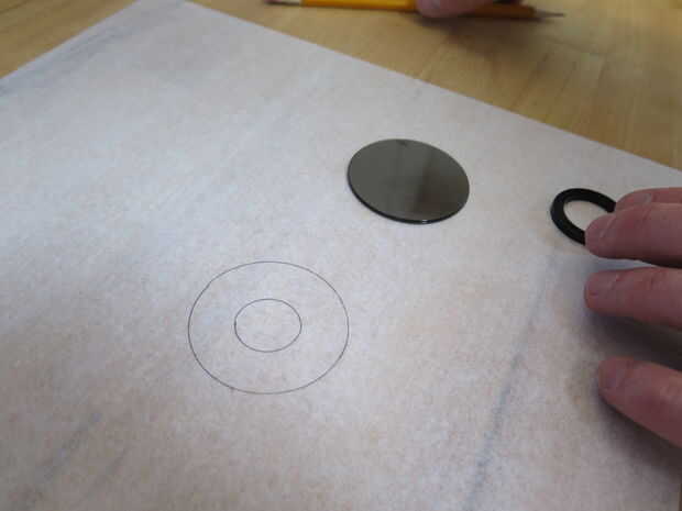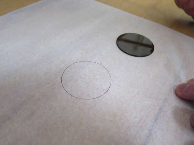 Usando el papel de calco, cada uno debe trazar círculos con un lápiz y luego el espacio interior con los espaciadores de corte láser acrílico. Utilice un par de tijeras para cortar esta forma de donut y encaja en los oculares.
