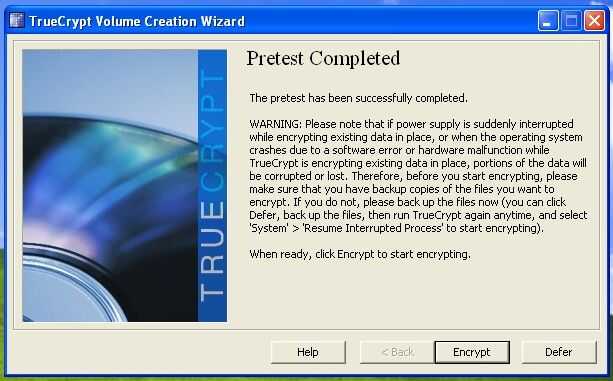 - PRECAUCIÓN: una vez que se hace clic en el botón encrypt, Truecrypt comenzará a cifrar todo el disco duro en el fondo. Desde este punto hacia adelante si se olvida la contraseña todos los datos en ese disco duro se perderán.
