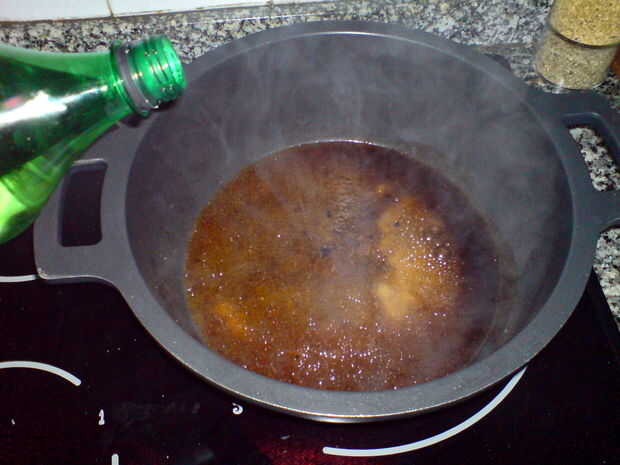 Sobre la bandeja vacía y caliente, vierta el glas de vino blanco y dejar hervir durante 15 segundos. Luego verter la salsa resultante sobre los filetes en el plato hondo.