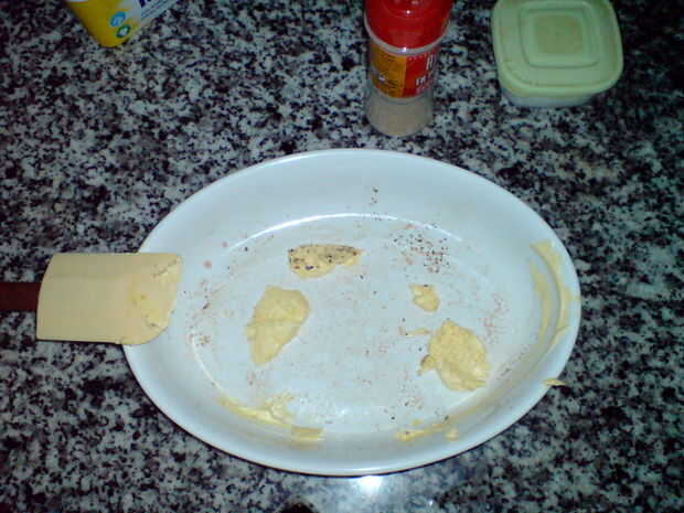 En un plato hondo pone 3 o 4 cucharaditas de mantequilla.