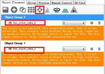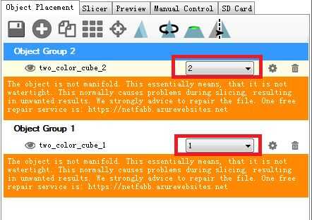 En realidad, two_color_cube se compone de dos archivos .stl. cada boquilla de imprimir un documento .stl, entonces pueden completar tareas de impresión de color diferente.
