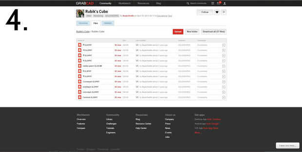 - Haga clic en la opción 'Ver archivos' en la parte derecha de la pantalla. Una lista de archivos debe subir como en la imagen 3 o 4 de la imagen. Descargar todos los archivos .stl en una carpeta debidamente nombrada. Alternativamente, usted puede simplemente haga clic el botón 'Descargar todo' para sacar todos los archivos a la vez.