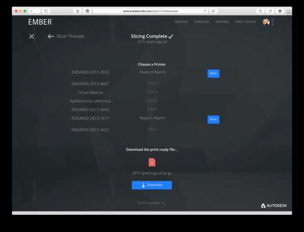 En la parte inferior de la página de descarga , hay un enlace que permite descargar sus datos de impresión. Haga clic en el botón azul de descarga y guardar el paquete de impresión en el disco local. Guardará en el formato: .tar.gz (su nombre). Esto es lo que subes la brasa en el paso siguiente.