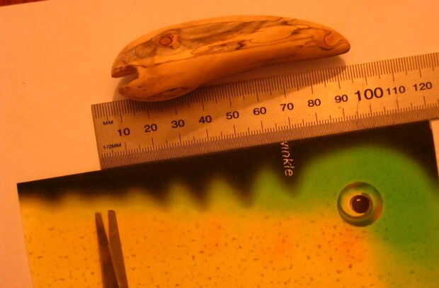 Recorte cualquier exceso. (En mi caso corté el final de la regla). Si estaban haciendo mucho de este uno diseño puede editar tu imagen así que su corte con el tamaño correcto para ahorrar tinta. De lo contrario es una buena idea dejar algunos excesos, porque una mano tallada Señuelos no siempre termina la longitud que te imaginado originalmente. Pero que sólo podría ser yo.