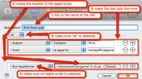 4) bien tan una vez que la regla todo para arriba, cerca de las preferencias de mail.