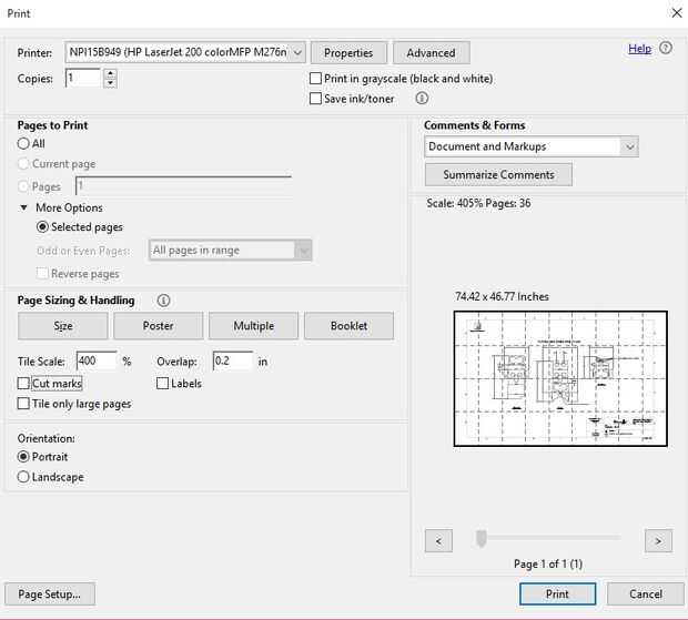 Este PDF es 1:4 de tamaño natural, queremos volar hasta 4 veces para volver al tamaño correcto. Bajo baldosa escala %, entre 400.