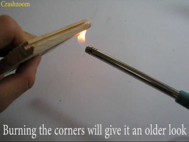 Puede firmar tu obra y escribir la fecha con un soldador, quema los bordes le dará un look vintage, después de el aerosol con barniz para proteger la imagen.