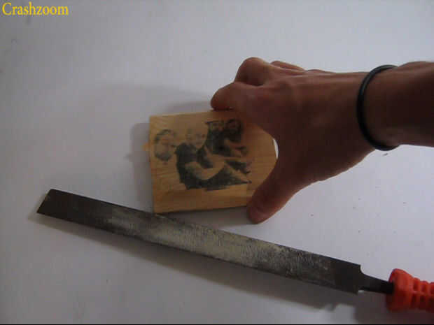Algunos podrían pensar, este paso debe realizarse antes del proceso de impresión, pero hay una razón para la manera de hacerlo, el proceso de transferencia es difícil y puede arruinarlo fácilmente (como a mi me pasó un par de veces), usted no quiere perder ya trabajado, sólo ten cuidado en la impresión al corte y lijado de piezas de madera.
