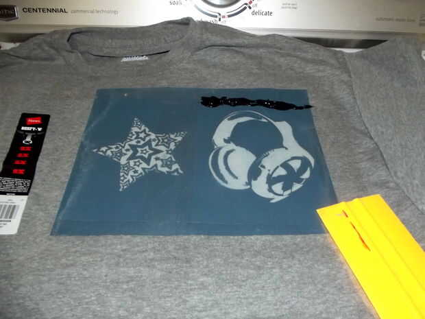 Uso un cuchillo de plástico porque es más fácil desecho fuera y poner la tinta extra de nuevo en el envase, pero puede usar lo que sea.  Pones la tinta hacia abajo como una línea en la parte superior, lo suficiente para hacer de un lado de la imagen a la otra.