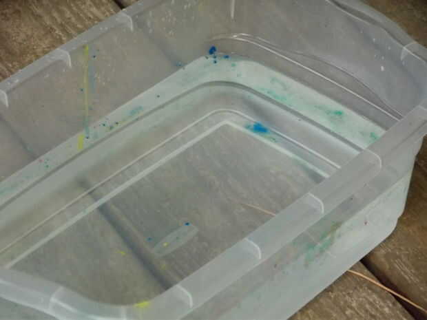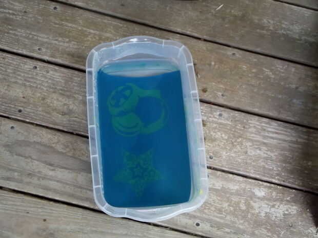 Después de que la película se expone, ponerlo en el agua.  Reposar al menos 15 minutos.  Cuanto más tiempo remoja más fácil será limpiar.  Yo espere mina desde el mediodía hasta la mañana siguiente.