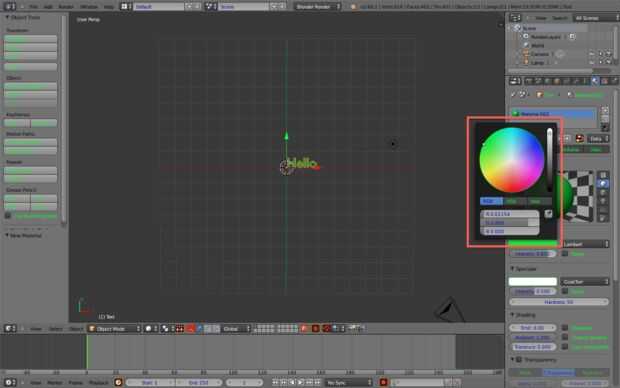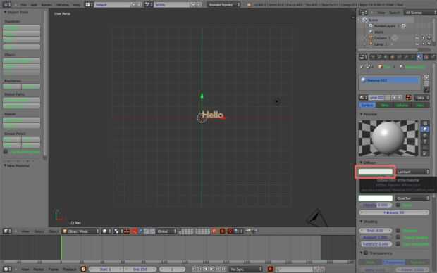 Luego volver a subir a la parte superior de la ventana Propiedades y haga clic en el círculo rosa. Hacia abajo y haga clic en "Nuevo". Esto agregará un nuevo material a su texto. Haga clic en la barra blanca debajo de la palabra "Difuso" para traer para arriba una rueda de color. Seleccione el color que desea que su texto. Haga clic de la rueda de color pop-up para cerrarla. Tenga en cuenta que cambiando el color aquí realmente no determina el color de la impresión, el plástico que utiliza a voluntad.