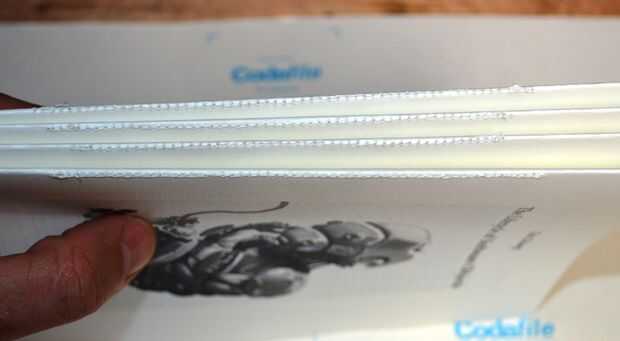 2. todas las firmas para que las espinas son incluso line. Antes de que pegue, asegúrese de que todas las firmas están en la posición correcta, no desea tener cualquier revés o las páginas en la secuencia incorrecta.