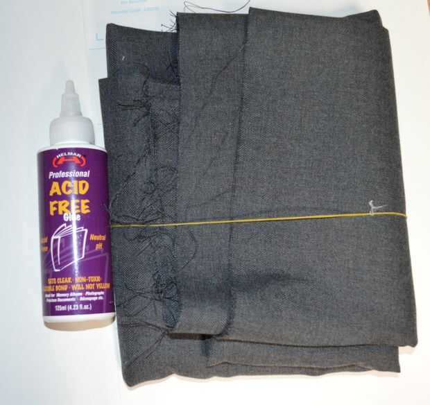4. Agregue el pegamento. El pegamento debe ser ph ácido libre, equilibrado y flexible. Cualquier tienda que vende material de scrapbook tendrá este tipo de pegamento. El pegamento debe cubrir toda la columna vertebral, pero no demasiado gruesa que no desea que se ejecute.