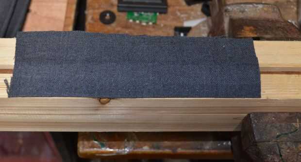 5. luego cortar un trozo del material. Debe ser tan largo como el libro y unos 60mm de ancho. Añadir poco de pegamento en el centro de esta y coloque en la columna vertebral.