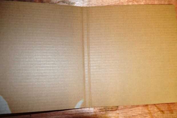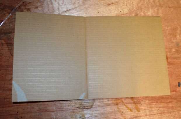 Punta - esta parte es muy importante - usted quiere asegurarse de que tienes un buen pliegue fuerte en ambos lados de la cartulina. La mejor manera de obtener una línea recta es dibujar uno en la cartulina. Utilice la regla de metal y realmente dar un buen golpe con el martillo. Una vez hecho esto, doblar la cartulina sobre por lo que está en medio y hacer esto la otra manera. Hazlo unas cuantas veces hasta que se asiente la cubierta plana naturalmente.