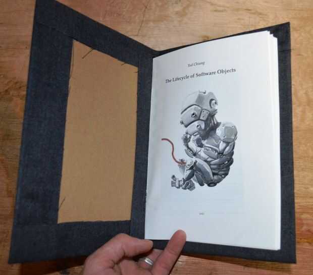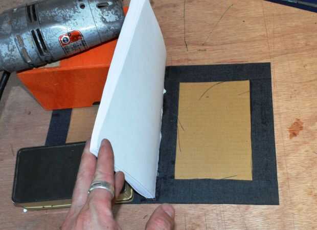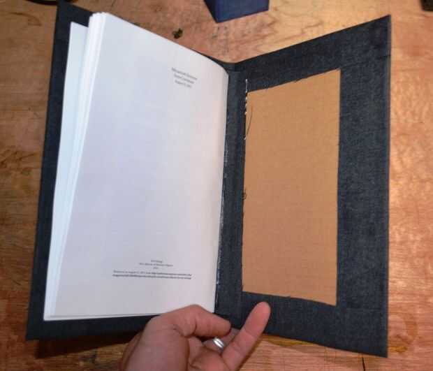 Punta - usted tendrá que configurar una manera de tener las páginas verticalmente de pie mientras se está secando el pegamento en las alas del libro. También ayudará al centrado el libro en la tapa. Utiliza un par de agarres para aferrarse a las páginas colgadas algunas cuerdas al techo y ató a los puños. De esta manera el papel colgaba verticalmente y era de