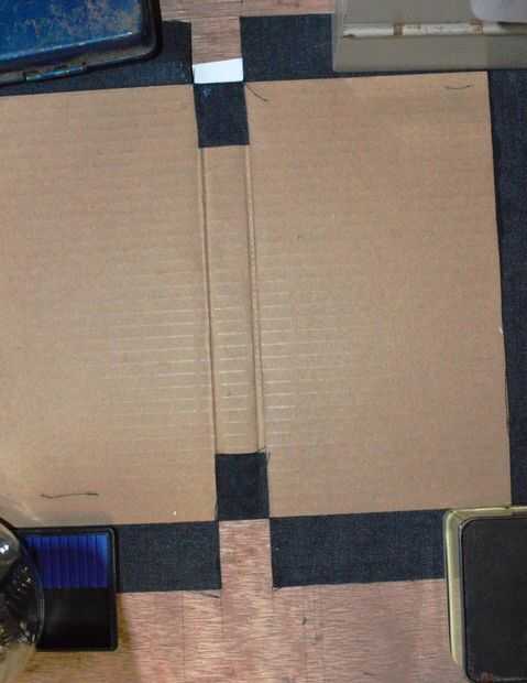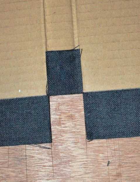 2. cortar 2 lengüetas en cada uno de los colgajos superior e inferior como se muestra a continuación y con adhesivo. Asegúrese de que la tela ha sido empujada en los pliegues.