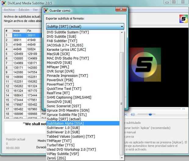 Abra el archivo .srt en el Media Subtitler y haga clic en archivo > Guardar como > subestación alfa SSA > OK > Introduzca un nombre para el archivo.