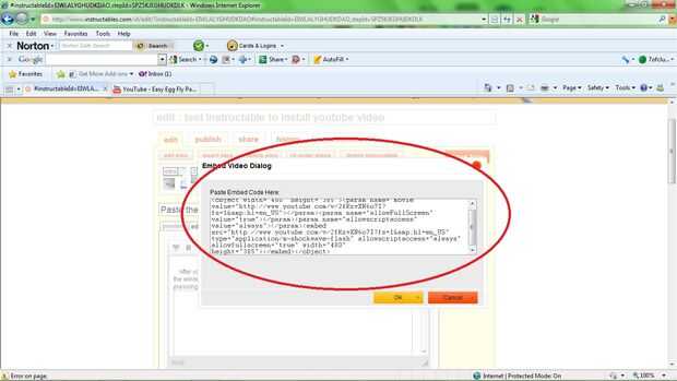 Cómo incrustar videos de Youtube en el Instructable utilizando Internet Explorer (4 / 9 paso)