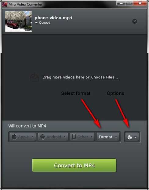 Añadir tu vídeo a la cola arrastrando en Miro o haciendo clic en "Elegir archivos..."
