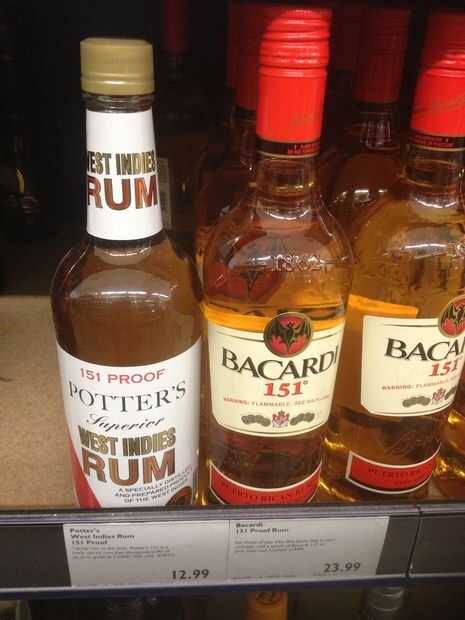 Obtenga usted una botella del ron de 151-proof más barato que se puede encontrar. No quiero mencionar nombres de almacén, pero llego mi Ron 151 barato a la compañía de bebidas muy populares de la cadena que vende bebidas y mucho más. Llevan una marca llamada "Marca de Potter" que es un genérico o marca de la casa Ron de 151-proof para cerca de $12 por una botella de 750 ml. Tienen luz y la oscuridad, pero no importa que uno elige aunque generalmente elegir la oscuridad. No utiliza la marca de Ron para esta receta porque es demasiado caro y no llegas a tomar de todos modos. De 50 a 80 puros, usar una botella de 750ml lleno de ron.