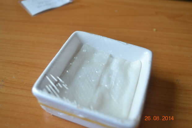 Poner en la bandeja y moje en el agua, poner bastante para que la toalla se moja y hay agua en la bandeja, no exagere, poner un poco más de un milímetro de agua, cubrir la bandeja con la película plástica y asegúrelo con la cinta de goma. Finalmente debe empujar unos agujeros en la lámina y coloque la bandeja en un router o algo más con una temperatura constante durante la noche.