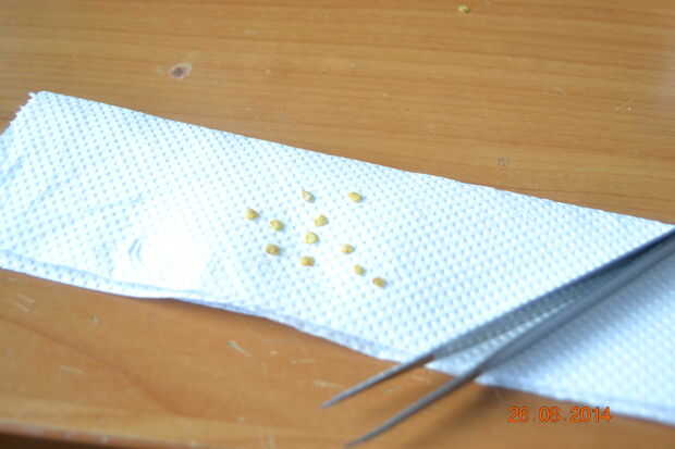 Tomar la toalla y doblar en una tira, colocar las semillas dentro de descartar las semillas con manchas negras o defectosy otra vez por lo que las semillas son sandwitched dentro, asegúrese de extender las semillas de uno a otro y asegúrese de que cabe en la bandeja de la curva.