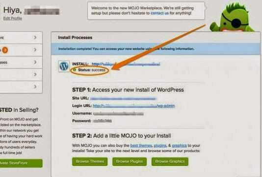Hecho! Tome nota de la información para acceder a tu nuevo sitio WordPress. Esta información también se le enviará por correo electrónico. Clic en el enlace de la URL del sitio le llevará a su sitio de Internet nuevo, vivo. Haciendo clic en el enlace URL de inicio de sesión se llevará a la página de inicio de sesión de WordPress donde puede ingresar su nombre de usuario y contraseña y entrar en el panel de administración de su sitio de WordPress.