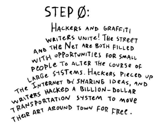 Hackers y escritores de graffiti se unen! La calle y la red están ambos llenos de oportunidades para gente pequeña alterar el curso de grandes sistemas. Los hackers la pieza por Internet mediante el intercambio de ideas, y escritores hackeado un sistema de transporte de mil millones de dólares para mover su arte alrededor de la ciudad gratis.