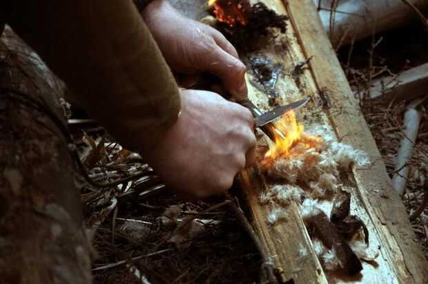 Voltee su barra de pedernal para que el lado de inserción chispas es hacia arriba. Golpear el pedernal con su cuchillo en un movimiento hacia abajo en la pila. Vas a ver chispas, pero lo más importante vas a desearlas chispas para golpear el magnesio. Cuando las chispas el magnesio encenderá! Para mantener este en marcha y haz un verdadero incendio iniciado, suavemente... y me refiero a golpe muy suave en el nido con la llama de oxígeno!
