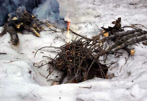 Obtener algo más grande de madera como palos y ramas grandes. Hacer un tipi con estos palillos más grandes sobre el fuego. PRECAUCIÓN, esta parte es muy importante! Tu fuego es extremadamente delicada en este punto. Añadiendo madera demasiado, o demasiado grande de piezas puede ahogar y destruir su trabajo! El fuego tiene hambre y no comer un pastel de cumpleaños con una mordida. La paciencia es clave.