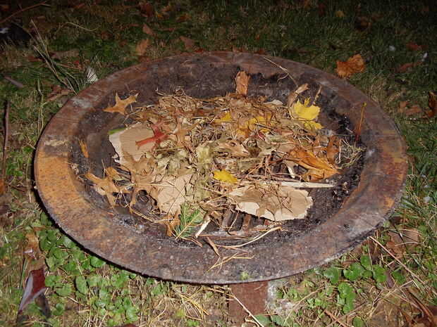 Paso 4: Colocar la hierba seca y hojas sobre la leña.