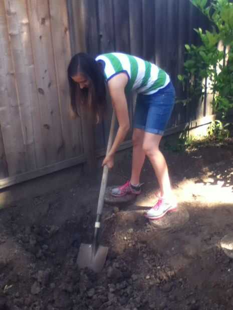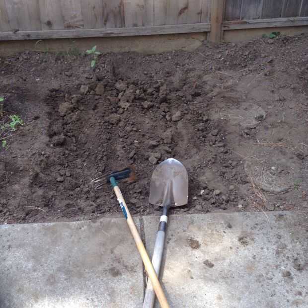 Este es el paso más difícil de este instructable. Esto requiere de fuerza y mucho tiempo. Primero debe decidir cómo profundo va estar cavando y sobre qué área. Seis pulgadas sería un buen comienzo, pero cuantos más sean, mejor. (Esto es a la parte donde después de que usted sabe dónde y cómo mucho te están desenterrando, usted puede comprar su tierra y mantillo).