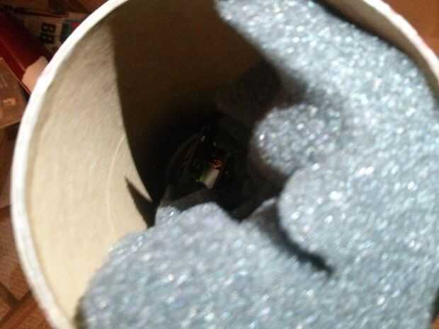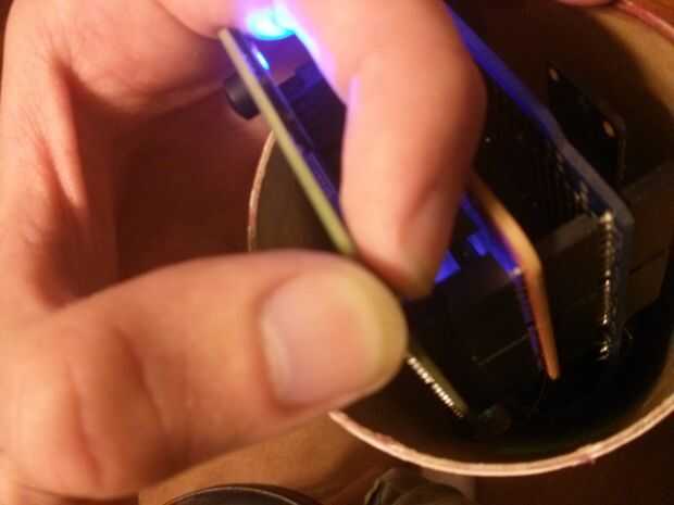 Este paso debe tomarse después de haber cargado tu cohete en el cojín del lanzamiento. Quite el módulo de aviónica de su área de carga, asegúrese de que permanece conectado a la fuente de alimentación y pulsado el SW2 hasta que el LED de estado parpadea en verde dos veces. Después de apagarse el led Coloque el módulo en el área de carga. empujar tan lejos abajo como puedas sin forzar, luego doblar el segundo bloque de espuma en el área de carga como se ve en la tercera imagen. Asegúrese de que la tarjeta MicroSD está clara de la espuma, si doblado como se ve en la cuarta imagen que podrá ver la tarjeta MicroSD sin tocar por la espuma.