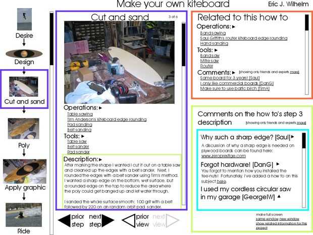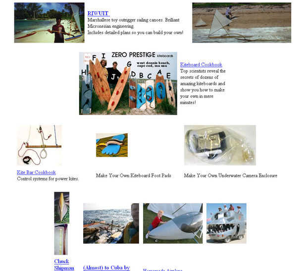 Suba en las playas alrededor de Boston con cometas cosido a mano y los tableros de madera contrachapada. Mitad el equipo se rompería y la otra mitad sería realizar maravillosamente. Luego documentamos nuestros resultados en nuestros sitios web personal y un blog llamado Zeroprestige (que ha movido desde entonces al grupo de Instructables ZeroPrestige). Pronto conseguíamos e-mails de gente pidiendo más información, desean reunirse con nosotros en la playa y en busca de consejos para encontrar el edificio de comunidades similares. Como resultado de compartir libremente nuestro trabajo, se reunió un montón de grandes personas, recibió oportunidades que dio lugar a la formación de Cometas de monoy se golpeó en la cara con la necesidad de un sistema de documentación basado en la web.