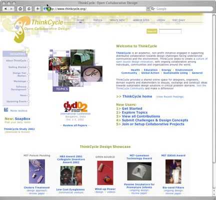 Al mismo tiempo, ThinkCycle fue puesta en marcha. Concepto de ThinkCycle era utilizar "braincycles" emparejando hasta problemas en el mundo en desarrollo con ingenieros en el mundo desarrollado. Mientras que unos buenos proyectos surgieron, el sistema en general fue un fracaso porque hay relativamente pocas personas que van a trabajar apasionadamente sobre los problemas que no son propias.