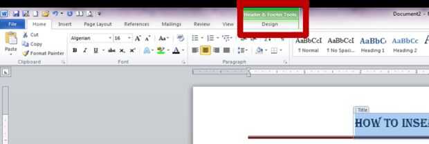 Para volver atrás a su documento principal simplemente haga clic en la pestaña Herramientas para encabezado y pie de página verde