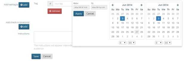 - Periodo de recolección: Para aquellos que quieran recoger fotos de varias semanas o días antes del gran evento. Usted puede seleccionar la fecha y hora que empezar y terminar en la colección. Recuerde, siempre tiene que ser antes de la boda! Haga clic en "Aplicar".